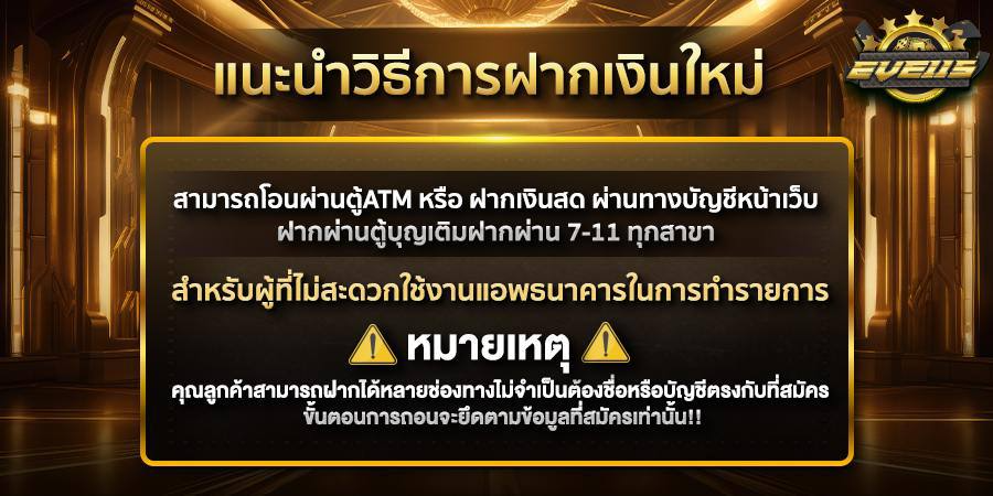 เพื่อนๆ หลายคนอาจกำลังมองหาเว็บพนันที่ไว้ใจได้ และ EVE115 ก็เป็นตัวเลือกที่น่าสนใจมากๆ เลยล่ะ เพราะไม่ว่าจะเป็นการฝากหรือถอนเงิน ทางเว็บไม่ได้กำหนดขั้นต่ำไว้ ทำให้เราสามารถเริ่มต้นเดิมพันได้ตามงบประมาณที่มี นอกจากนี้ ระบบยังทำงานอัตโนมัติทั้งหมด ไม่ต้องรอแอดมินมาตอบ ไม่ต้องส่งสลิป ทำให้การเล่นเป็นเรื่องง่ายและสะดวกมากขึ้น